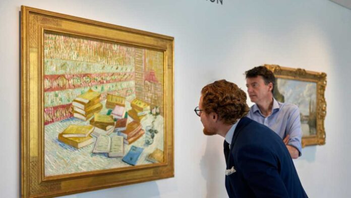 Piktura e Van Gogh, e cila përshkruan një grumbull librash mbi një tavolinë, shkaktoi një luftë ofertash shtatëminutëshe midis ekspertit të Sotheby’s, Simon Shaw, tregtarit David Nahmad dhe këshilltares Patti Wong, e cila përfundimisht bëri ofertën fituese.
