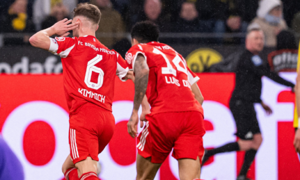 However, the Bavarians scored again just four minutes later, with Joshua Kimmich netting the decisive goal for 3–2, giving Bayern a dramatic victory in the German Derby.
