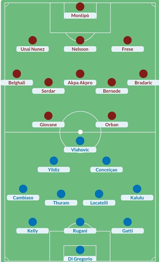Juventus edhe sonte nuk starton me Edon Zhegroven, që do ta pret rastin në phesën e dytë, pasi pritet rikthimi nga minuta e parë e Sergio Conceiçao. Yildiz dhe Vlahovic nuk rrezikojnë paraqitjet e tyre, kurse Rugani pritet të luaj nga fillimi në qendër të mbrojtjes para brazilianit Bremer./Front online/