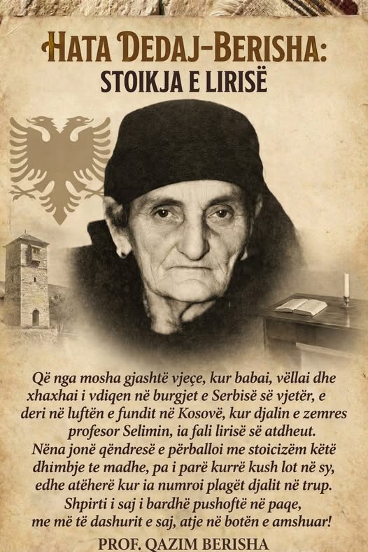 Sot, në 23-vjetorin e nisjes së saj drejt amshimit, Hata Dedaj-Berisha nuk kujtohet thjesht si një emër në epitaf. Ajo është shpirti i bardhë që endet nëpër flladin e lirisë që gëzojmë. Ajo është dëshmia se nëna shqiptare di të vuajë me dinjitet, të dojë pa kushte dhe të qëndrojë vertikal edhe kur bota përmbyset. Ajo shkoi te të dashurit e saj, atje ku dhimbja nuk ekziston, duke na lënë pas një udhërrëfyes moral: se si njeriu mund të mbetet i pathyeshëm, edhe kur jeta i kërkon gjithçka.
